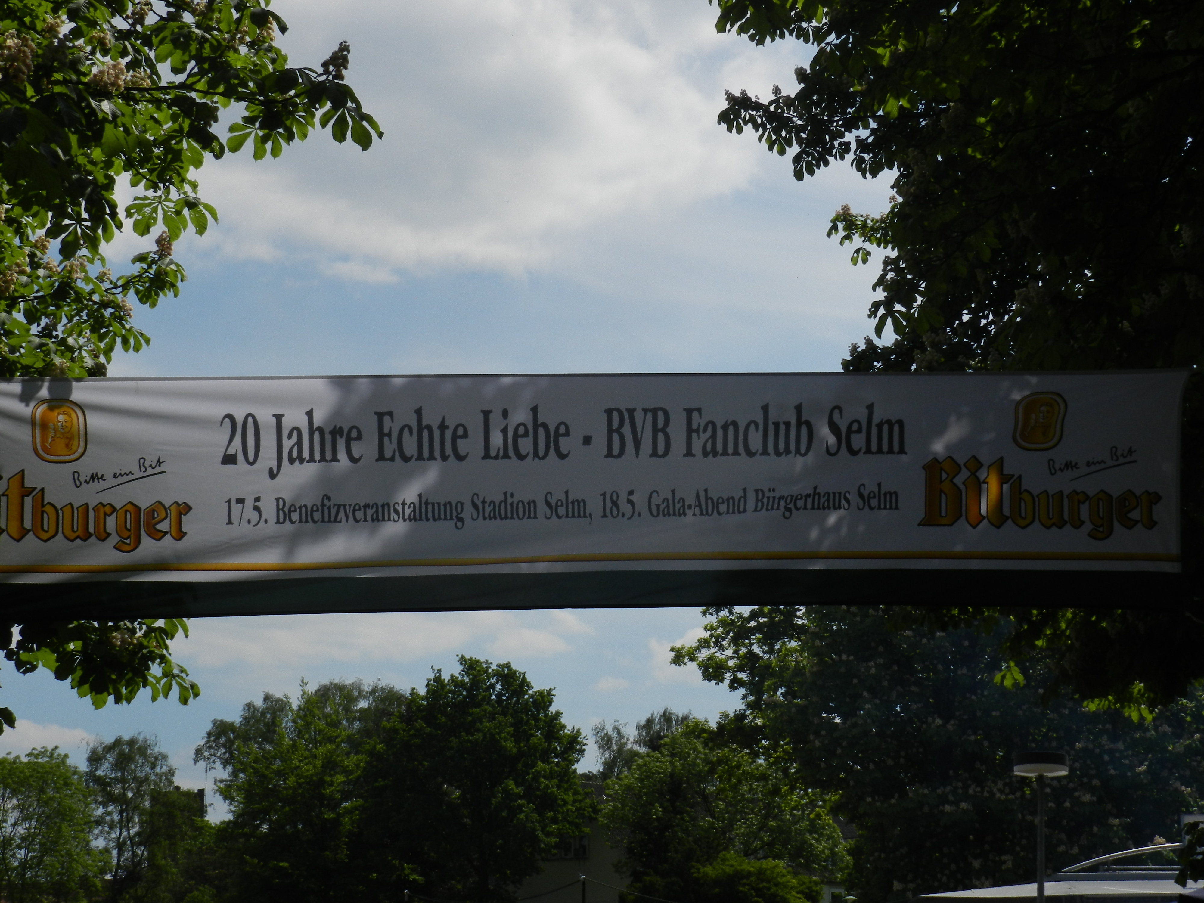 Siggi Held an die Gäste, Glückwünsche des Vereins überbrachte die Fanbeauftragte des BVB, Petra Stücker. Mit dabei hatten die beiden diverse Fanutensilien, u. a. einen von allen Meisterspielern unterschriebenen Ball. Als besonderes Geschenk an die Initiatoren überbrachte Marc Peine von Kinderlachen e.V. ein von allen Spielern des BVB unterschriebenes Originaltrikot von Neven Subotic mit. Alle Einnahmen dieser zwei Tage gehen komplett an Kinderlachen e.V.! Wieviel das sein würde, konnte man an dem Abend zwar noch nicht abschätzen, doch eine Erkenntnis zeichnete sich bereits ab: Man hatte mindestens das Doppelte eingenommen, mit dem man gerechnet, bzw. was man sich erhofft hatte. Und so konnte der Programmendpunkt, ein erneuter Auftritt von „Kasche“ kommen, der seine besten Songs für ein munteres schwarzgelbes Potpuri erklingen ließ. Nahezu alle sangen mit und geben der Veranstaltung eine besondere Note. Doch das stellt die Selmer vor keine größeren Probleme, denn schließlich haben einige der Fanclubmitglieder mit dem Dortmunder Sänger bereits im Tonstudio ein Lied für sein Album aufgenommen. Danach war der offizielle Teil vorbei und es wurde gefeiert. Denn das ist ein weiteres besonderes Merkmal der Selmer! Feiern können sie bis es Morgen wird. Ob an diesem Abend, auf diversen Auswärtsfahrten oder auf Mitgliederversammlungen – es wird viel gefeiert bei den BVB-Anhängern. Der Fanclub war schließlich z. B. bei den letzten drei Pokalendspielen vor Ort, bei UEFA-Cup Spielen in Glasgow, Turin und Rom, dem UEFA-Cup Finale in Rotterdam und natürlich auch dem Champions League Finale 1997 in München – um nur einige Episoden zu benennen. Unvergessen bleibt aber der Abend 1993 in Auxerre, als Stefan Klos den entscheidenden Elfmeter zum Weiterkommen ins Uefa-Cup-Finale gehalten hatte und seine Torwarthandschuhe daraufhin in die schwarzgelbe Menge warf und Wolfgang Barton ausgerechnet den rechten, mit dem „Stoffel“ den Elfer gehalten hatte, auffing und mit nach Hause nahm. Noch heute ist er im Besitz des Fanclubs und ein immer wieder gern präsentiertes Glanzstück der Trophäensammlung.