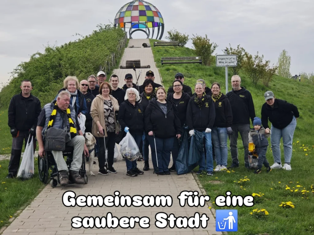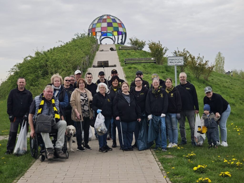 Unterstützung fand die Müllsammelaktion unter anderem auch beim BVB Fanclub Selm, der für soziale Projekte immer ein offenes Ohr hat, besonders wenn es um die eigene Stadt geht. Rund 30 Fanclubmitglieder säuberten am Samstagmorgen den Selmer Auenpark sowie den Spielplatz an der Römerstraße.