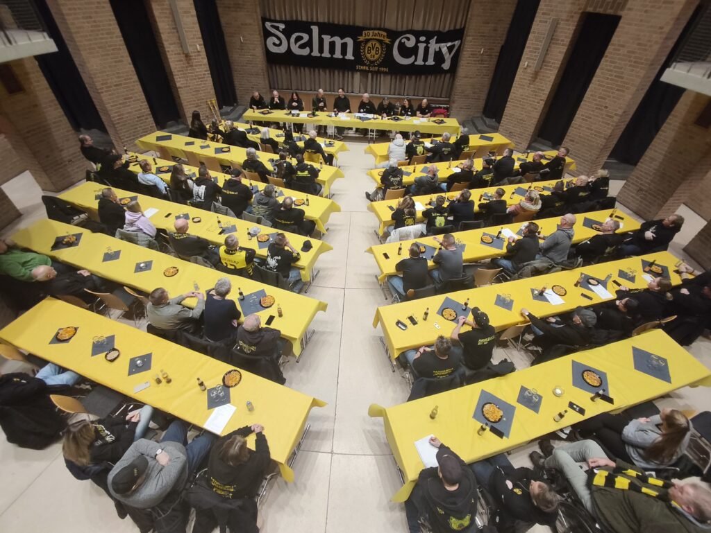 Am vergangenen Freitag fand unsere Jahreshauptversammlung statt. Diesmal im großen Saal des Bürgerhauses in Selm, wo sich rund 80 Mitglieder einfanden. Wichtigstes Thema auf der Agenda waren Neuwahlen. Der Vorstand, sowie der erweiterte Vorstand wurden einstimmig von den Mitgliedern wiedergewählt. Somit steht 1. Vorsitzender Markus Kapp (Kappi) seit 2008 ununterbrochen an der Spitze des Fanclubs.