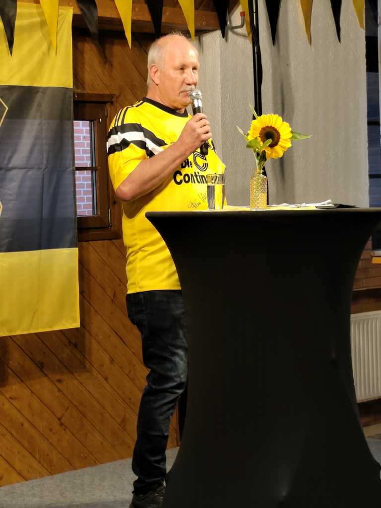 In seiner beeindruckenden Rede bedankte sich der 1. Vorsitzende Markus Kapp, von allen kurz „Kappi“ genannt, herzlich beim Kreis Unna, vertreten durch Landrat Mario Löhr, für das entgegengebrachte Vertrauen. Besonders stolz zeigte er sich, den Fanclub und die Stadt Selm bei den Feierlichkeiten zum 50‑jährigen Bestehen des Kreises Unna mit den Schwarzgeben Familientag vergangenen Juli repräsentieren zu dürfen.