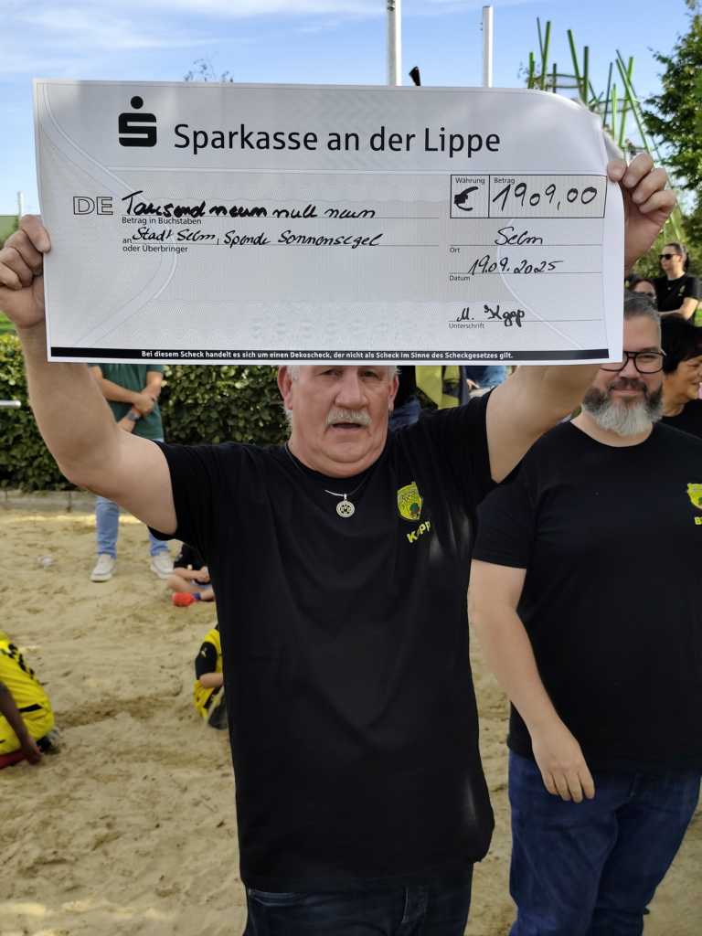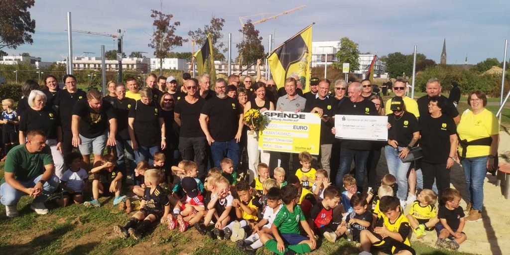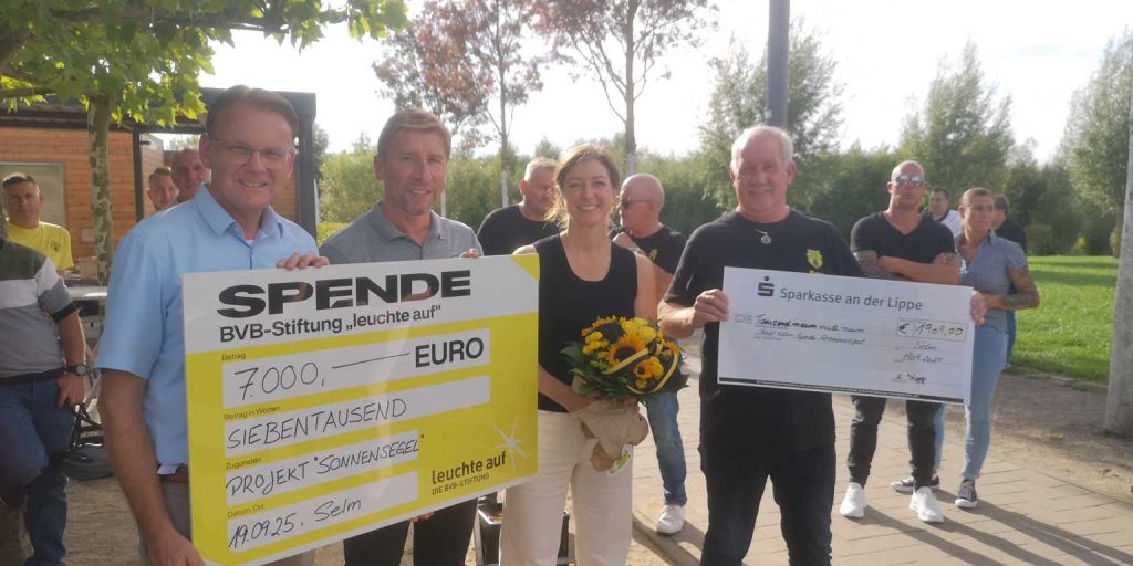 Im Rahmen der Übergabe überreichte Stiftungsmanagerin Maike Vollmer gemeinsam mit Günter (Kutte) Kutowski eine Spende von 7.000 € im Namen von „Leuchte auf „. Der BVB Fanclub Selm steuerte zusätzlich 1.909 € bei. Den noch fehlenden Restbetrag übernimmt die Stadt Selm, wie Bürgermeister Thomas Orlowski bestätigte.